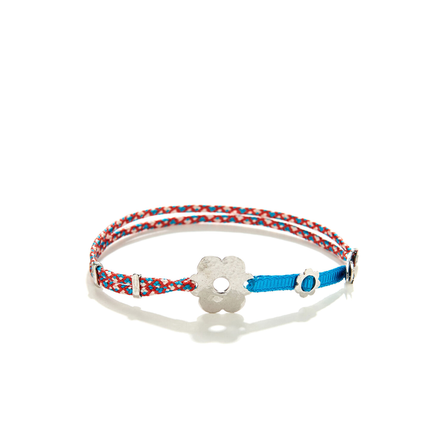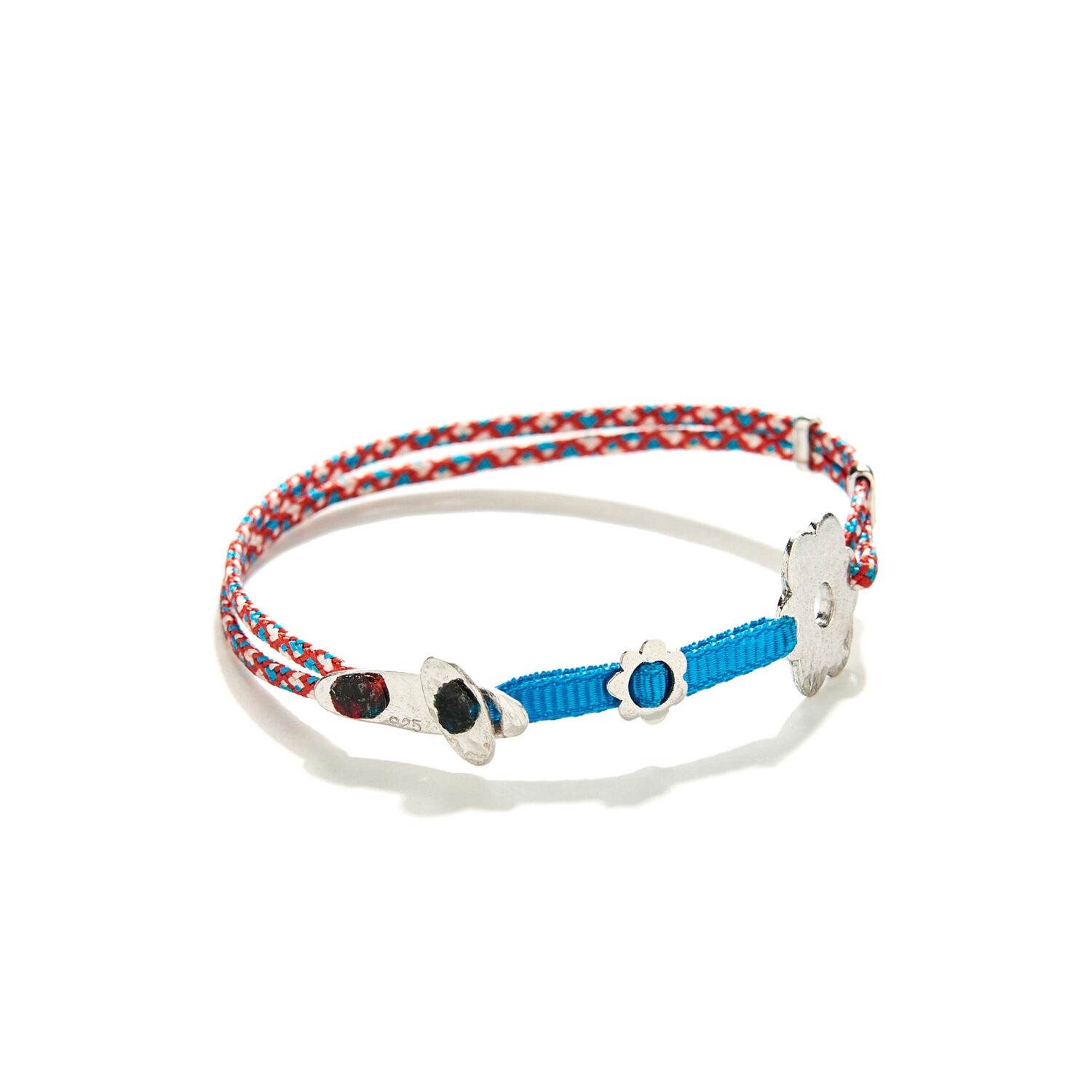 Bracelet in margaret shape, blue and multicolored cords made of silver.