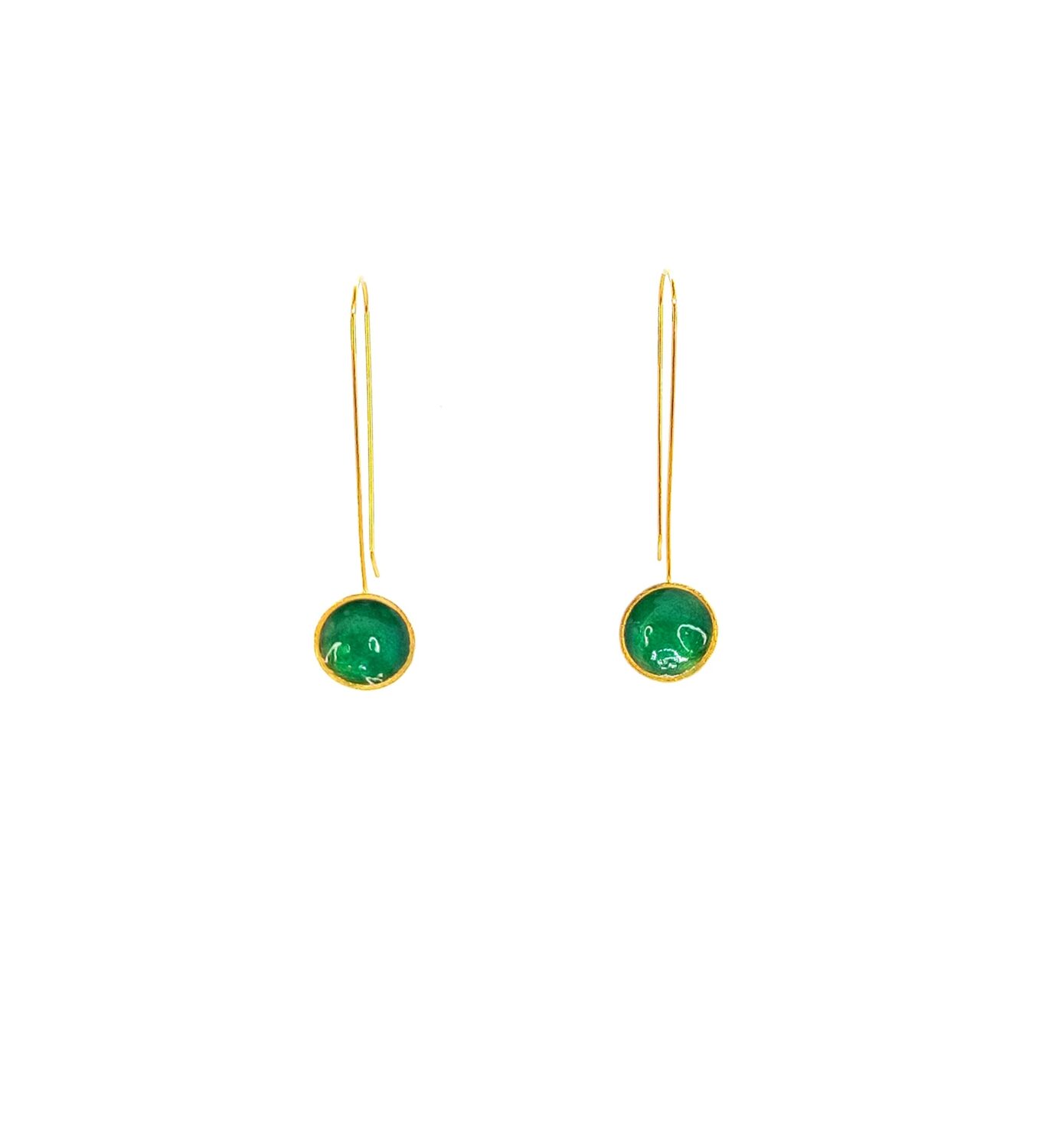Silver earrings with blue or green enamel, in two color options. Silver and gold plated.