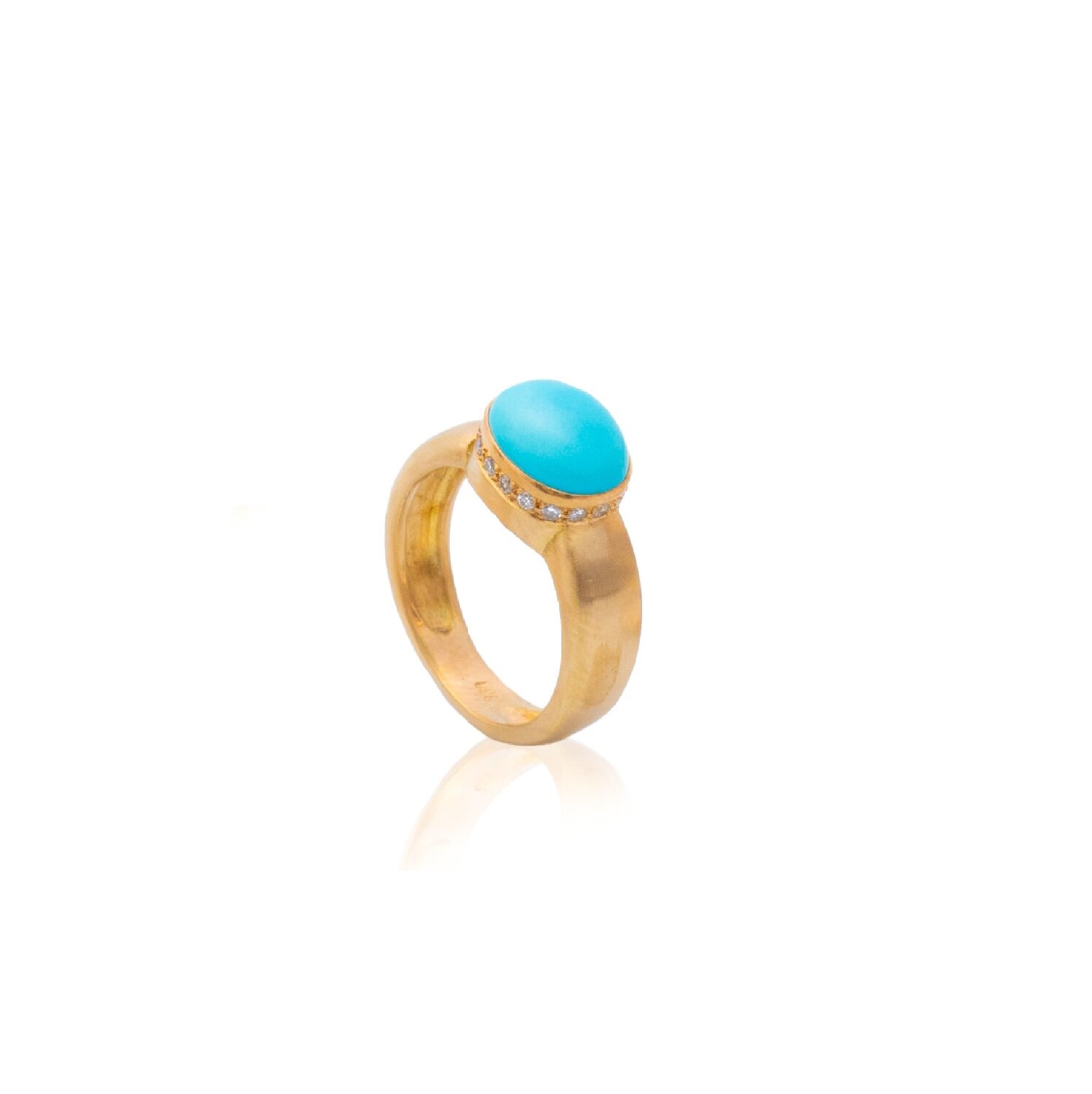 Δαχτυλίδι από κίτρινο χρυσό και διαμάντια που εκθέτει με μοναδικό τρόπο ένα φυσικό τιρκουάζ. Σας χαρίζει πολυτέλεια και απλότητα!