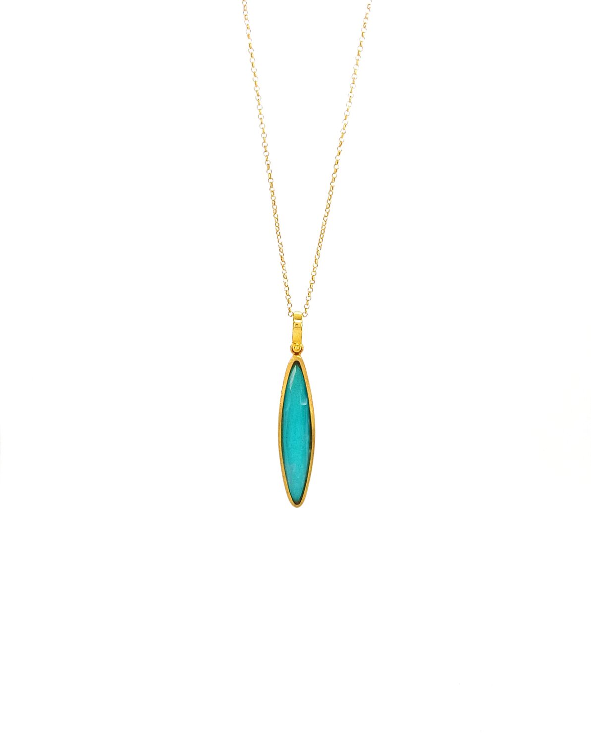 Silver necklace with amazonite and matte finish in two color options silver and gold plated.