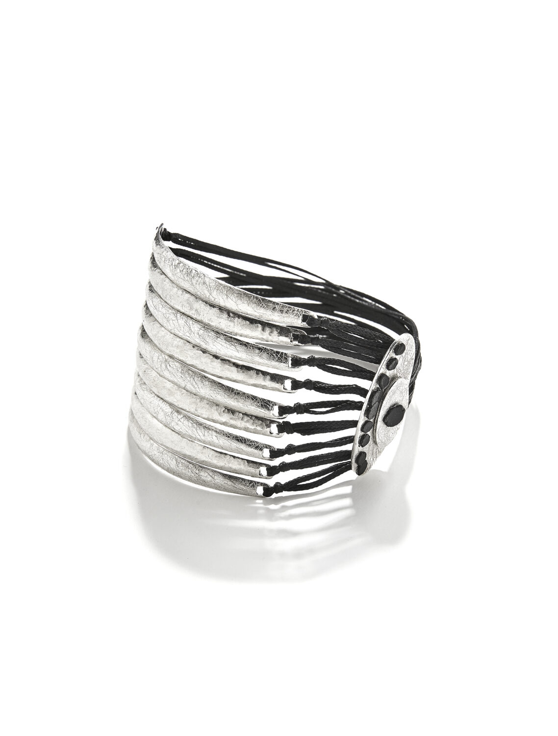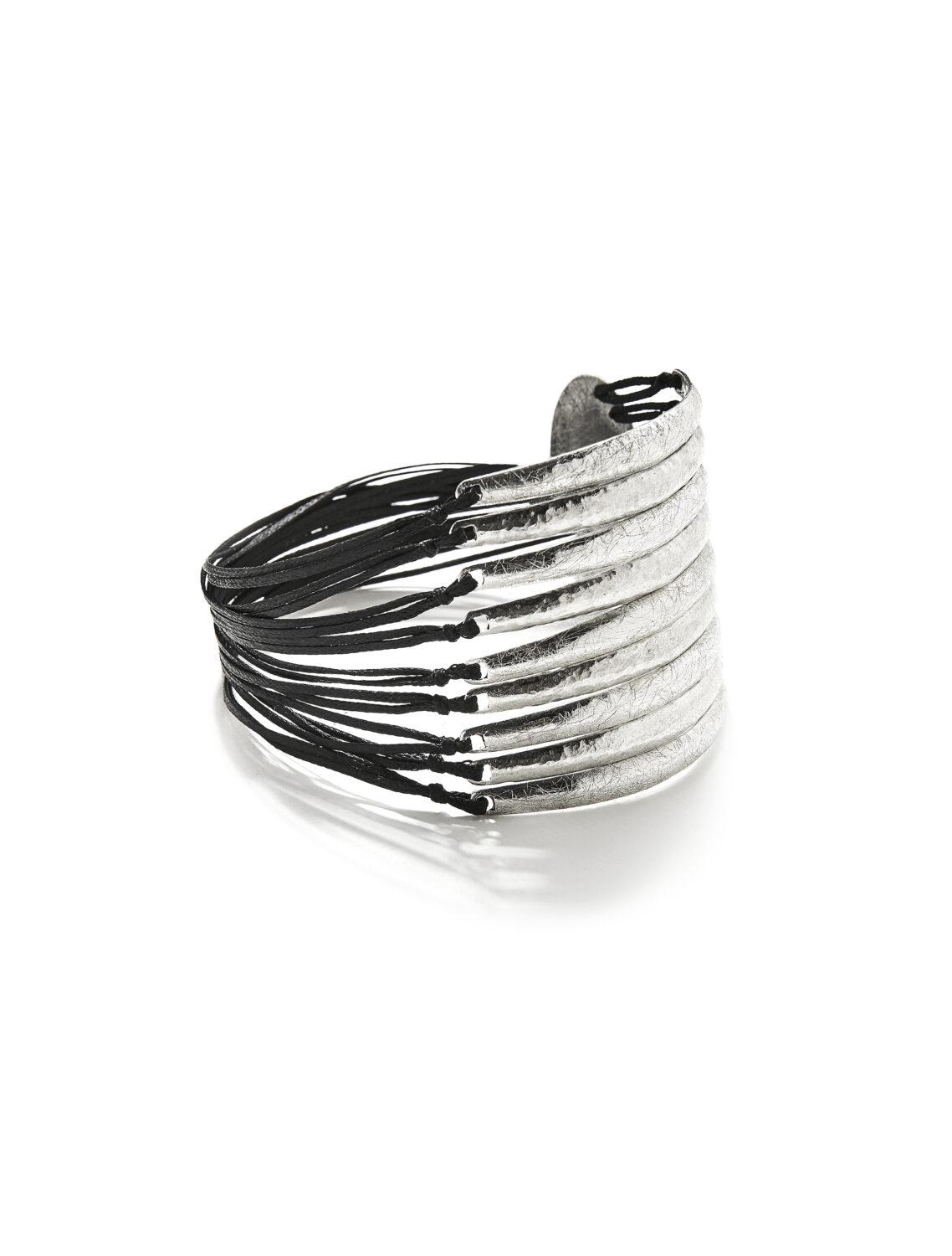 Bracelet made of silver and black thin cords, with a scratch finish!